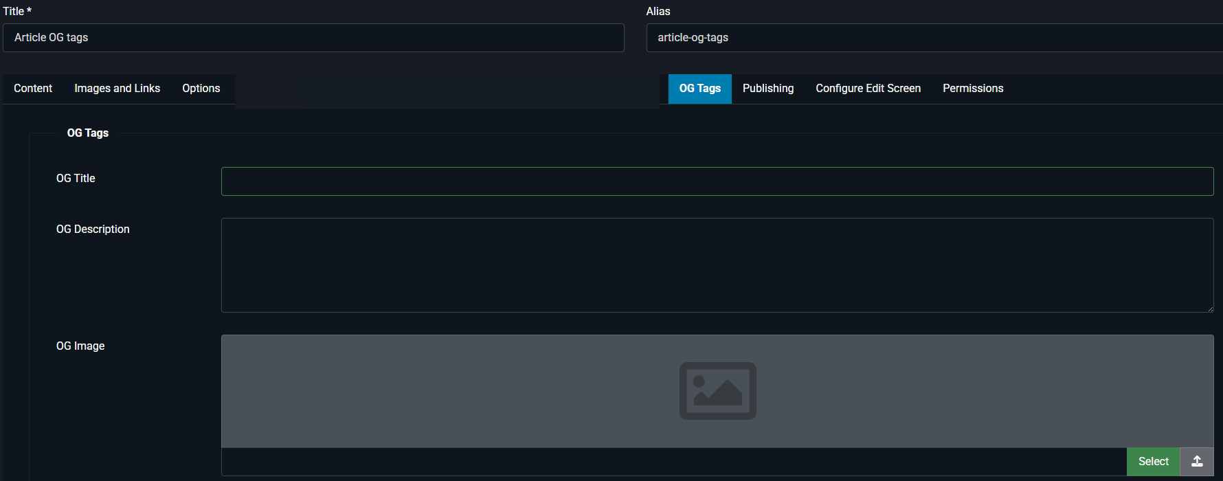- In article editing view, you will have new tab "OG Tags". Add the values and save the article.